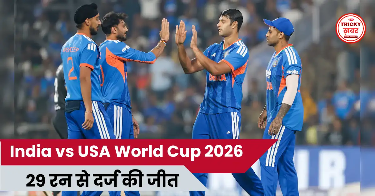 India vs USA World Cup 2026 मुकाबले में टीम इंडिया ने अपने अभियान की शुरुआत जीत के साथ की। 7 फरवरी 2026 को मुंबई के वानखेड़े स्टेडियम में खेले गए आईसीसी मेंस टी20 वर्ल्ड कप मैच में भारत ने अमेरिका को 29 रन से हराया। स्कोरलाइन भले ही 161/9 बनाम 132/8 रही, लेकिन इस जीत के पीछे संघर्ष, अनुभव और कप्तानी की परिपक्वता की कहानी छिपी थी।